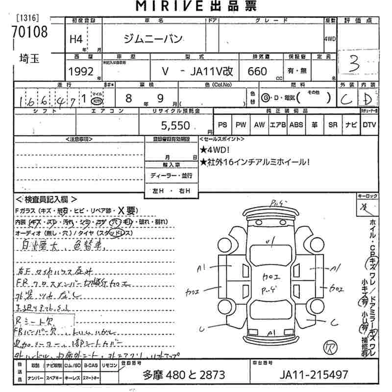 | SCOTT LIMITED | V-JA11V | F6A | Part-time 4WD | 3AT | 657cc | 58ps(43kW)/5500rpm | AИ-92 | 1 431 000 | |