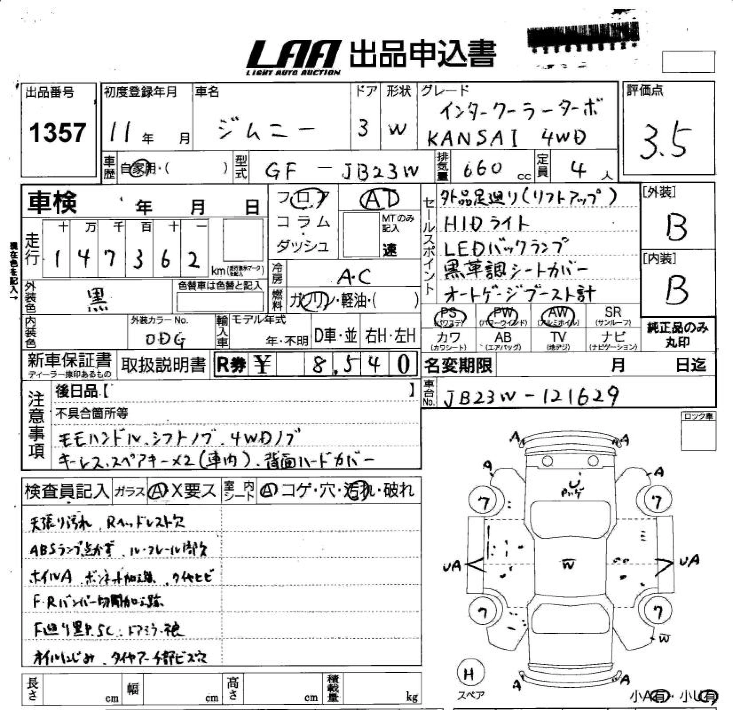 | XA | GH-JB23W | K6A | Part-time 4WD | 5MT | 658cc | 64ps(47kW)/6500rpm | AИ-92 | 1 082 000 |