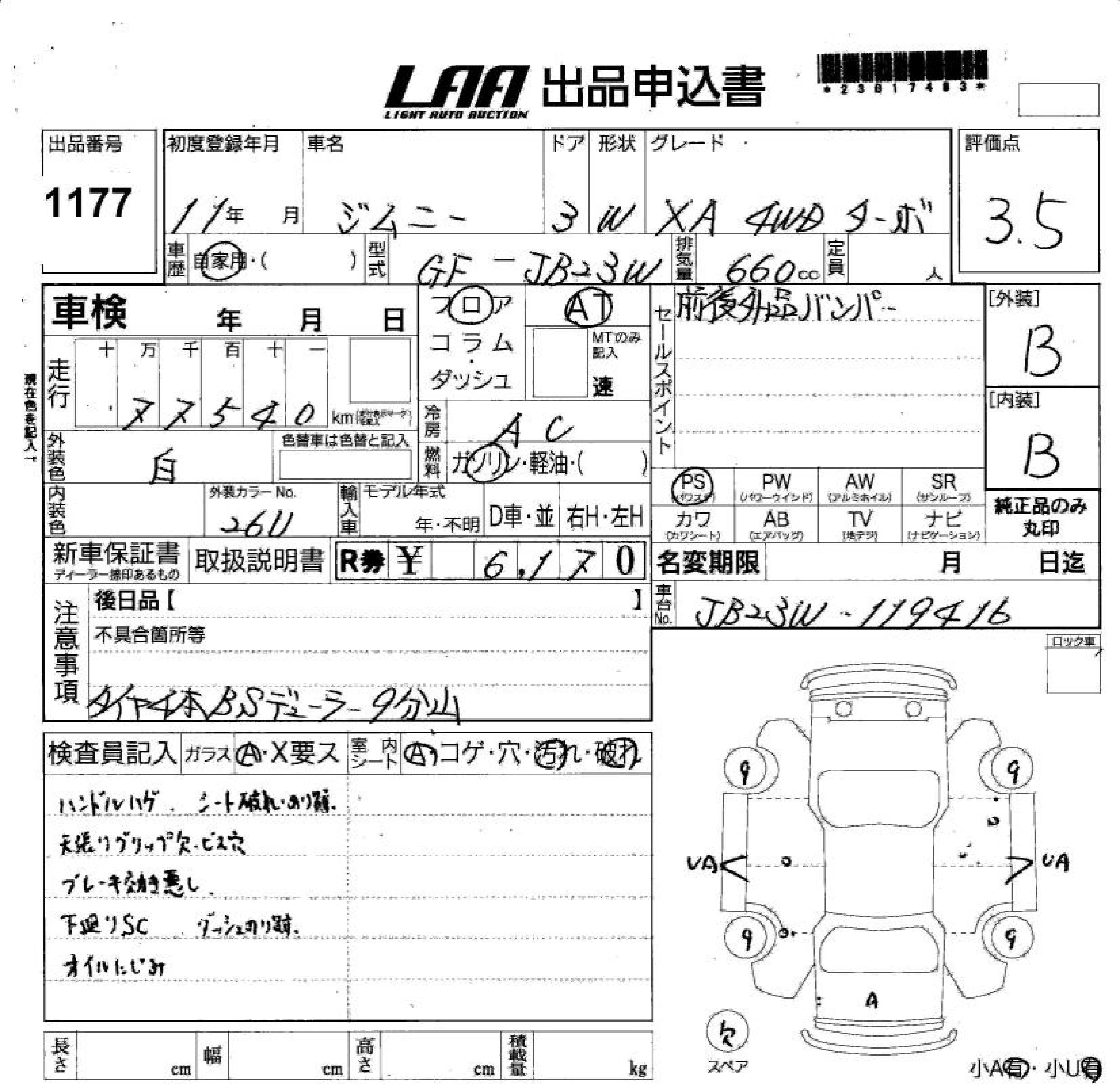 | XA | GH-JB23W | K6A | Part-time 4WD | 5MT | 658cc | 64ps(47kW)/6500rpm | AИ-92 | 1 082 000 |