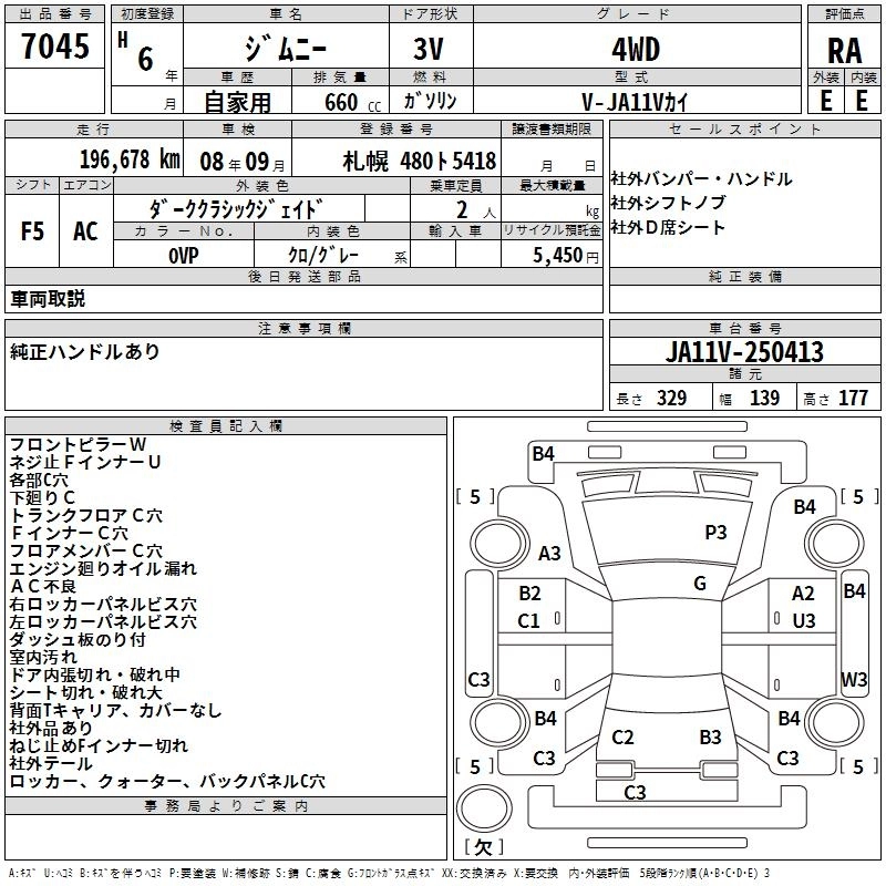 | WILD WIND LIMITED | V-JA11V | F6A | Part-time 4WD | 3AT | 657cc | 58ps(43kW)/5500rpm | AИ-92 | 1 451 000 | |