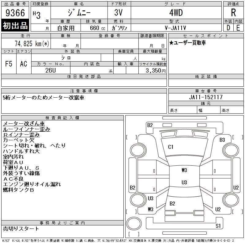 | CC | V-JA11C | F6A | Part-time 4WD | 5MT | 657cc | 58ps(43kW)/5500rpm | AИ-92 | 1 145 000 | |