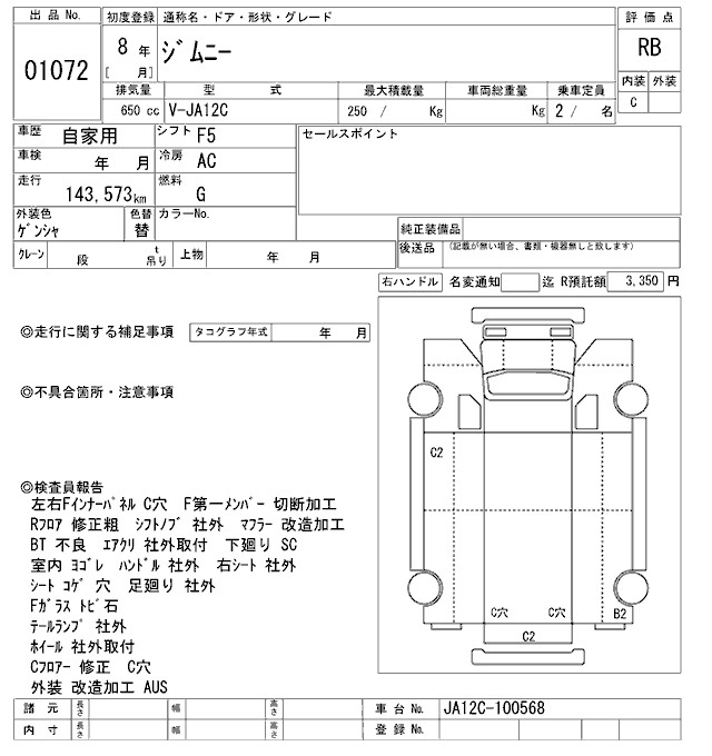 | LANDVENTURE | E-JA22W | K6A | Part-time 4WD | 3AT | 658cc | 64ps(----kW)/6500rpm | AИ-92 | 1 450 000 | |