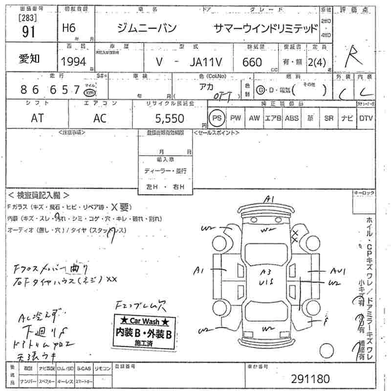 | WILD WIND LIMITED | V-JA11V | F6A | Part-time 4WD | 3AT | 657cc | 58ps(43kW)/5500rpm | AИ-92 | 1 451 000 | |