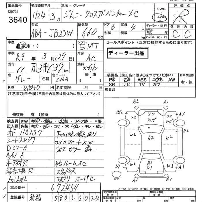 | XG | ABA-JB23W | K6A | Part-time 4WD | 5MT | 658cc | 64ps(47kW)/6500rpm | AИ-92 | 1 260 000 |