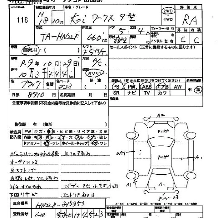 | A | CBA-HN22S | K6A | FF | 5MT | 658cc | 54ps(40kW)/6500rpm | AИ-92 | 779 100 | |