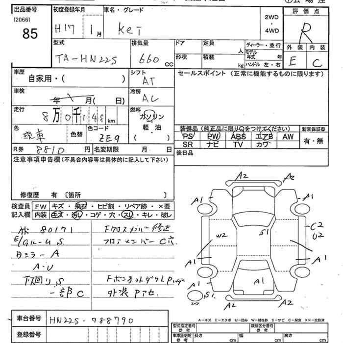 | A SPECIAL | CBA-HN22S | K6A | FF | 4AT | 658cc | 54ps(40kW)/6500rpm | AИ-92 | 891 450 | |