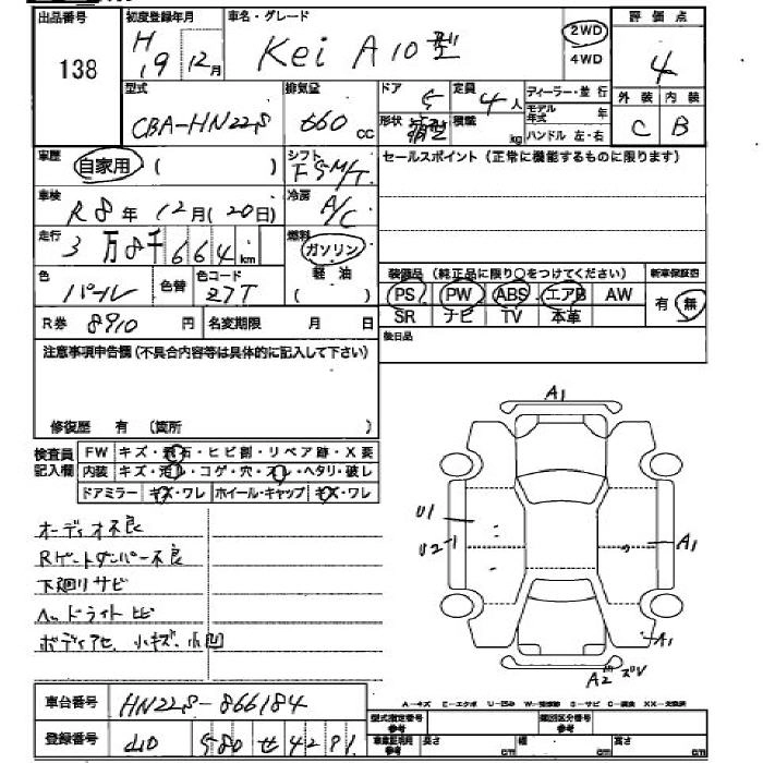 | A | CBA-HN22S | K6A | FF | 4AT | 658cc | 54ps(40kW)/6500rpm | AИ-92 | 861 000 | |