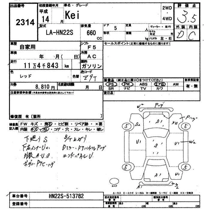 | E LIMITED | LA-HN22S | K6A | FF | 5MT | 658cc | 54ps(40kW)/6500rpm | AИ-92 | 837 000 | |