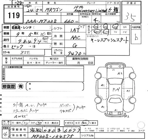 SUZUKI MRWAGON 2012 г., лот № 119