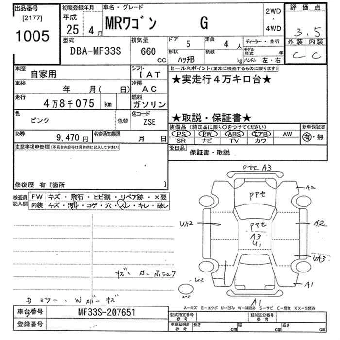 Год выпуска2013 Пробег 48 000 км КузовMF33S КомплектацияG