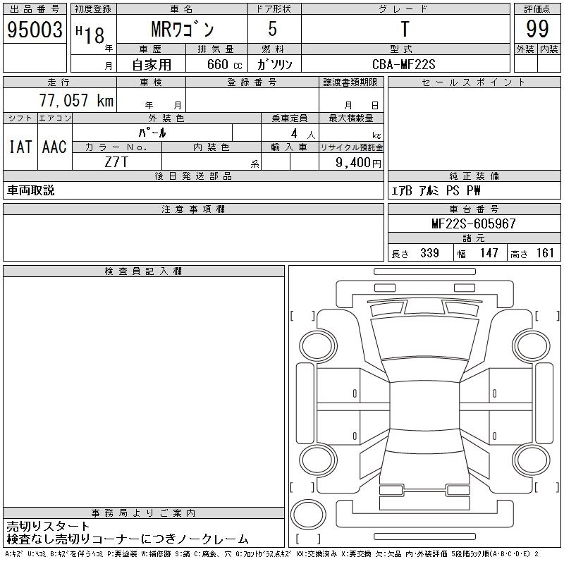 Год выпуска2006 Пробег 77 000 км КузовMF22S КомплектацияT