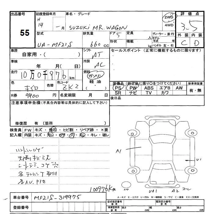 SUZUKI MRWAGON 2002 г., лот № 55