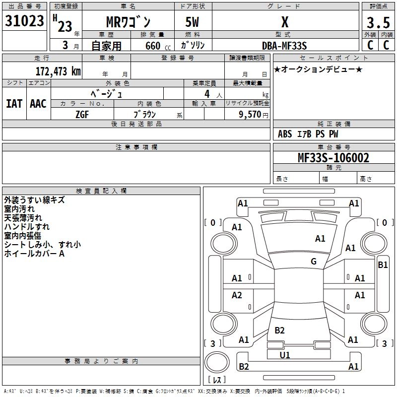 SUZUKI MRWAGON 2011 г., лот № 31023
