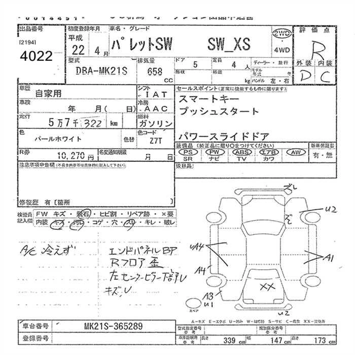 | XS | DBA-MK21S | K6A | FF | CVT | 658cc | 54ps(40kW)/6500rpm | AИ-92 | 1 428 000 |