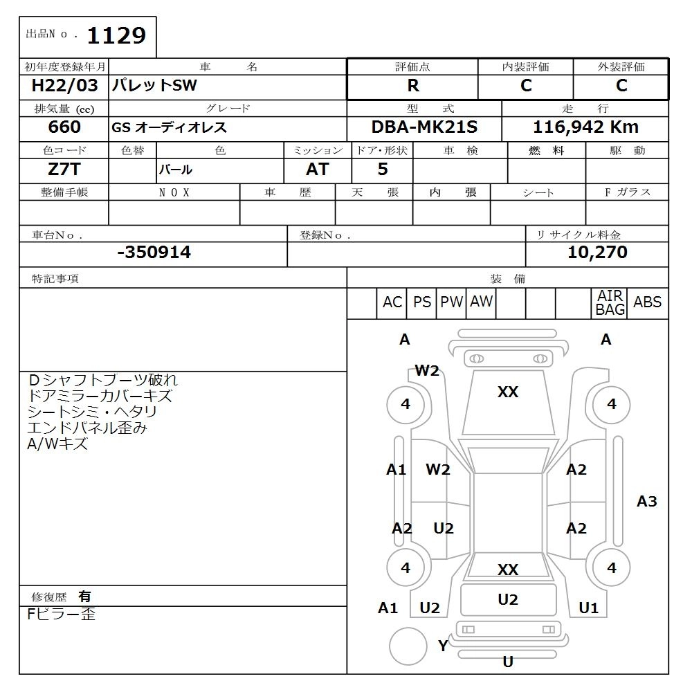 | XS | DBA-MK21S | K6A | FF | CVT | 658cc | 54ps(40kW)/6500rpm | AИ-92 | 1 428 000 |