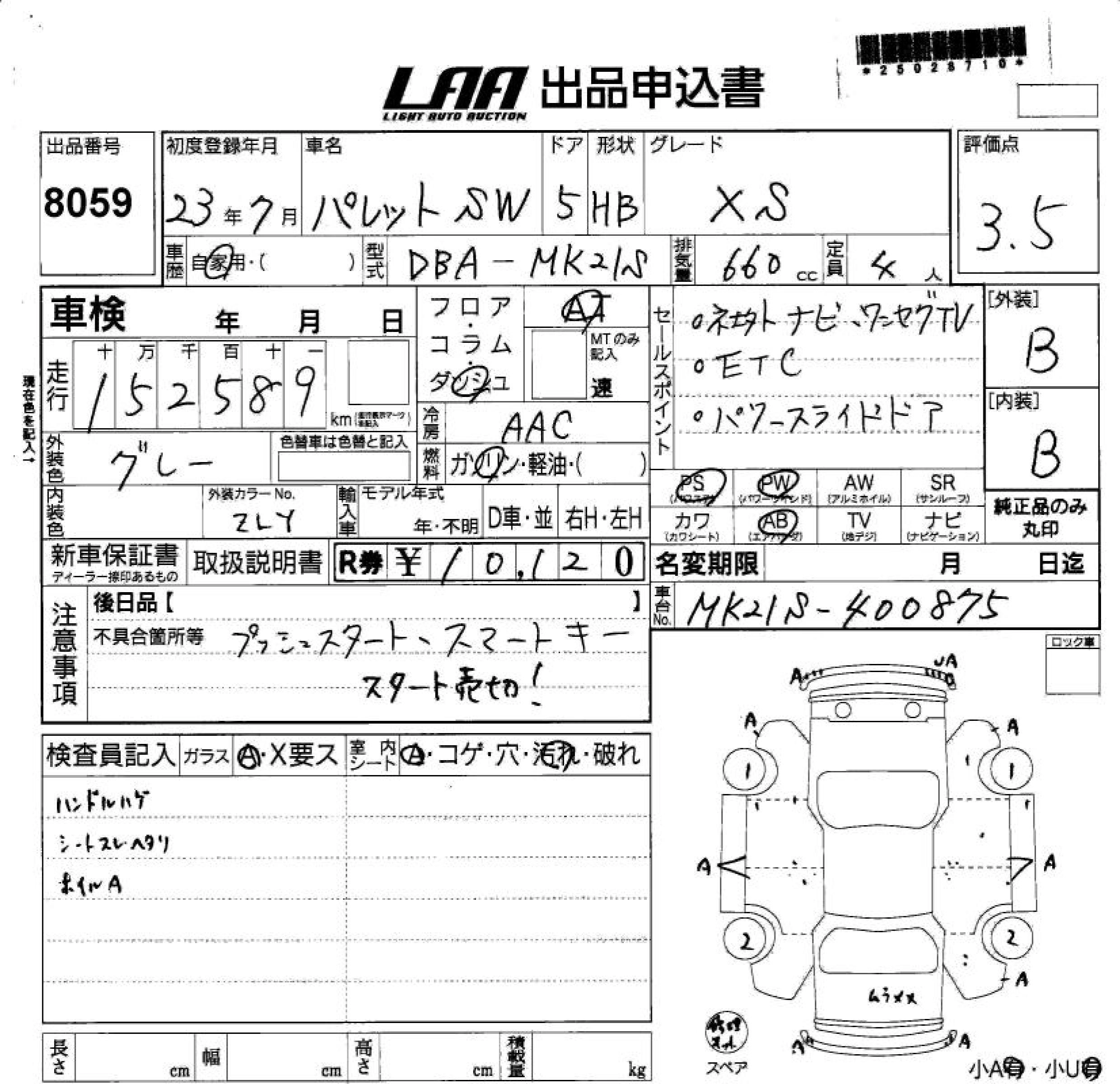 | LIMITED II | DBA-MK21S | K6A | FF | CVT | 658cc | 54ps(40kW)/6500rpm | AИ-92 | 1 499 400 |