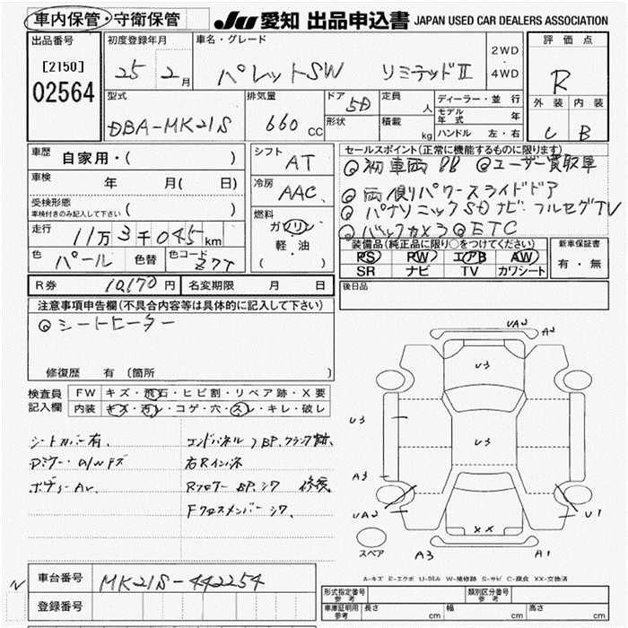 SUZUKI PALETTE SW 2013 г., лот № 2564