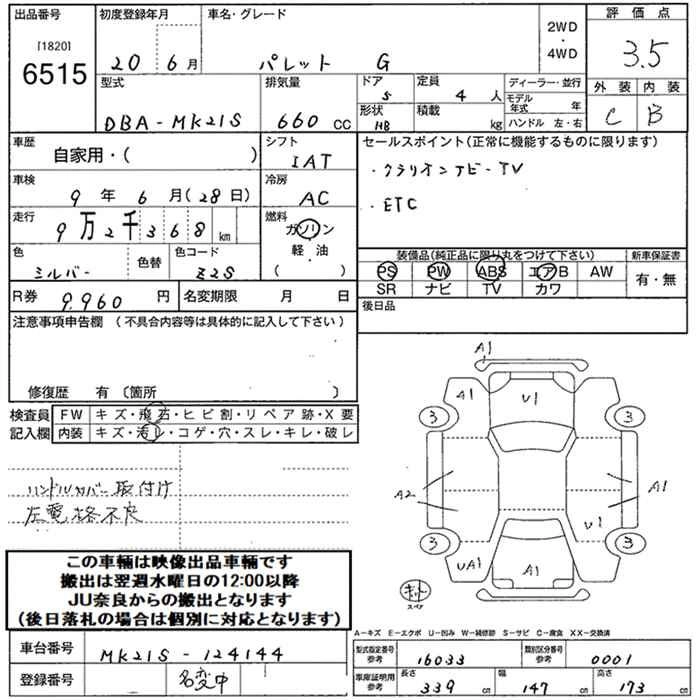 | X | DBA-MK21S | K6A | FF | 4AT | 658cc | 54ps(40kW)/6500rpm | AИ-92 | 1 239 000 | |