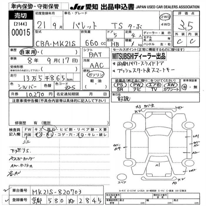 | L | DBA-MK21S | K6A | FF | CVT | 658cc | 54ps(40kW)/6500rpm | AИ-92 | 1 207 500 | |