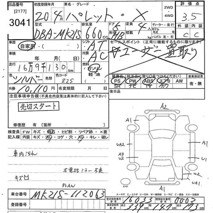 | G | DBA-MK21S | K6A | FF | 4AT | 658cc | 54ps(40kW)/6500rpm | AИ-92 | 1 113 000 |