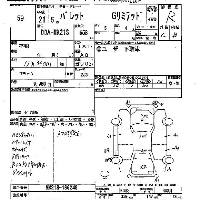 | X | DBA-MK21S | K6A | FF | CVT | 658cc | 54ps(40kW)/6500rpm | AИ-92 | 1 270 500 | |