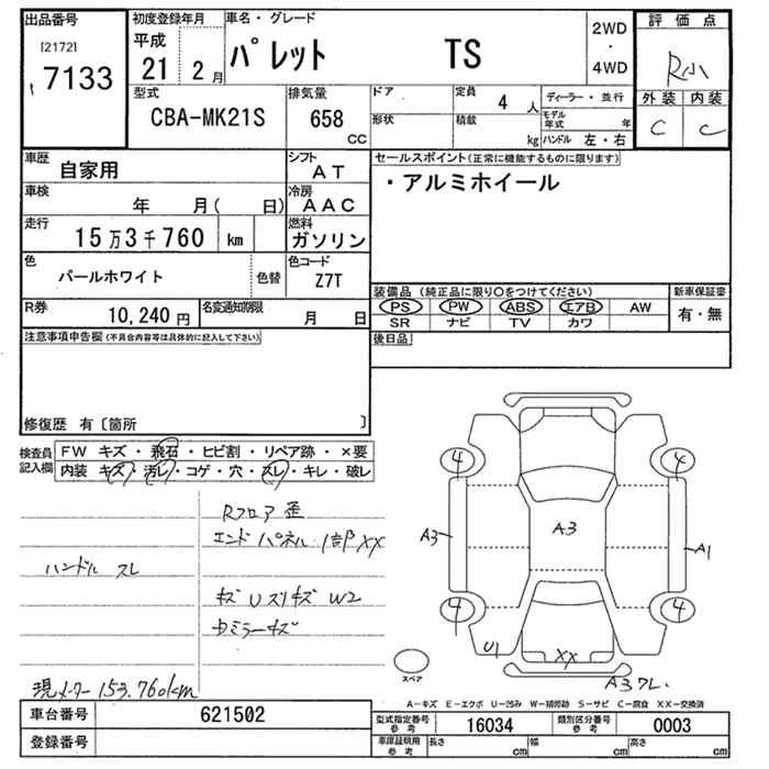 | G | DBA-MK21S | K6A | FF | 4AT | 658cc | 54ps(40kW)/6500rpm | AИ-92 | 1 134 000 |