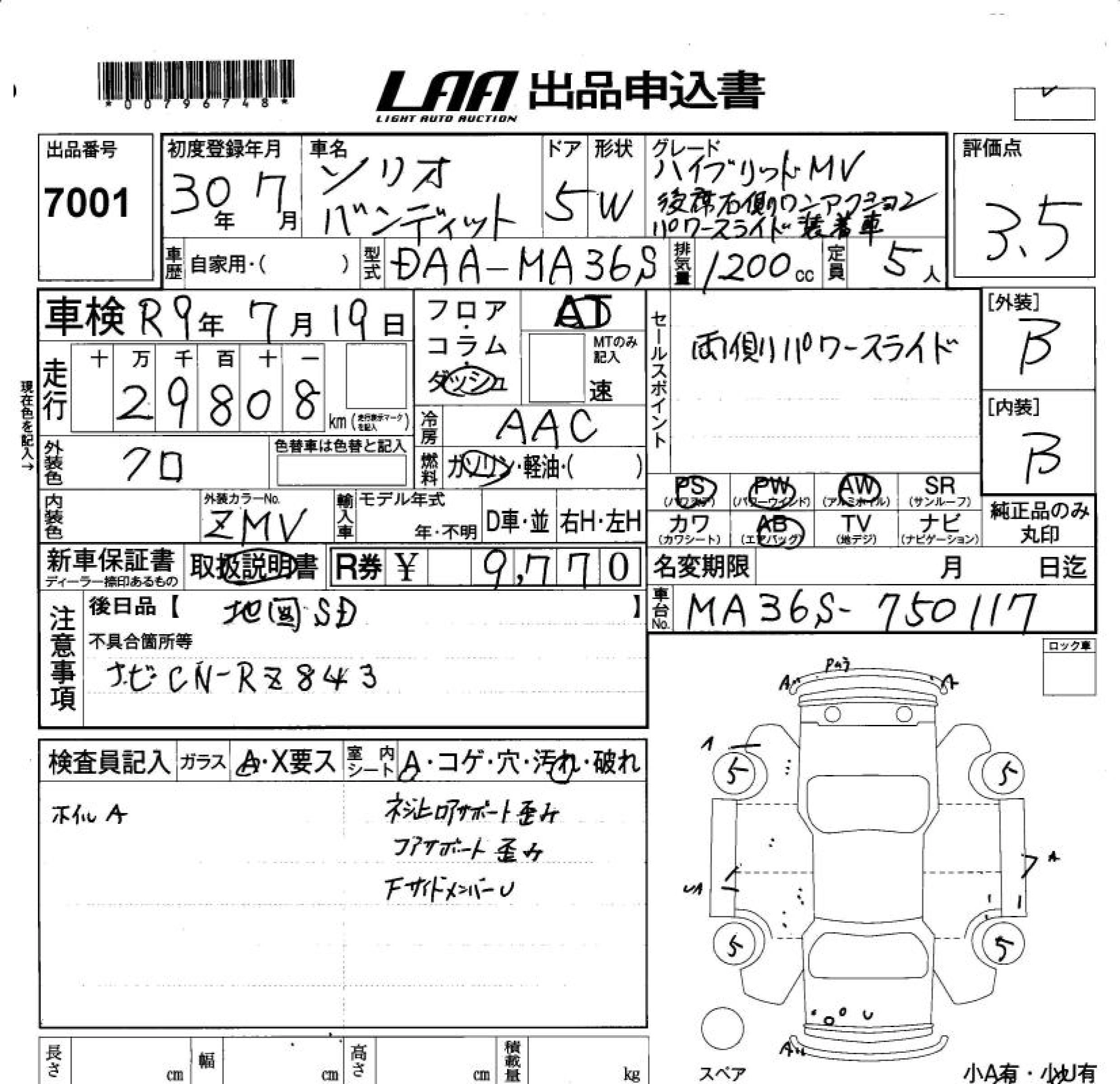 30 000 км КузовMA36S Комплектация HYBRID MV REAR SEAT RIGHT SIDE WANA