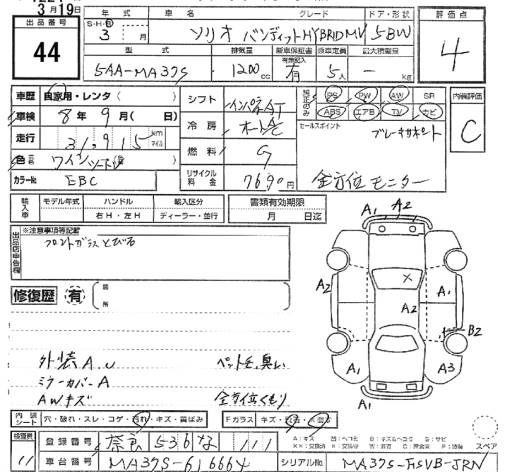 Стартовая цена авто на аукционе 850 000 ¥