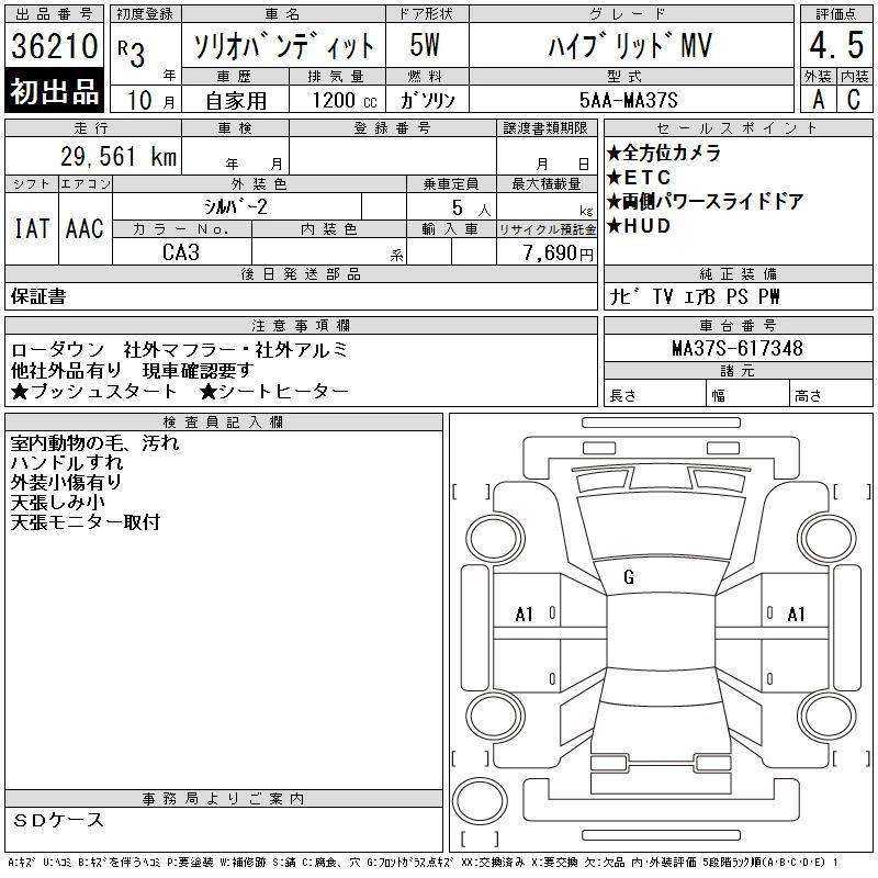 Год выпуска2021 Пробег 30 000 км КузовMA37S Комплектация HYBRID MV