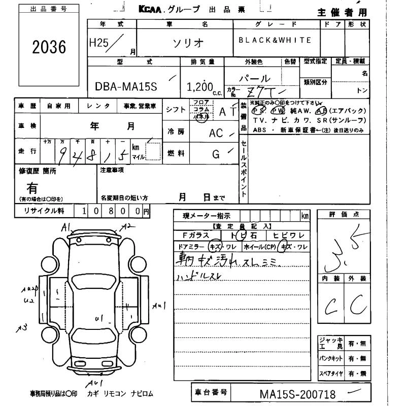 | BLACK&WHITE II DJE | DBA-MA15S | K12B | FF | CVT | 1242cc | 91ps(67kW)/6000rpm | AИ-92 | 1 780 800 | |