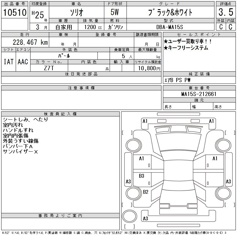SUZUKI SOLIO 2013 г., лот № 10510