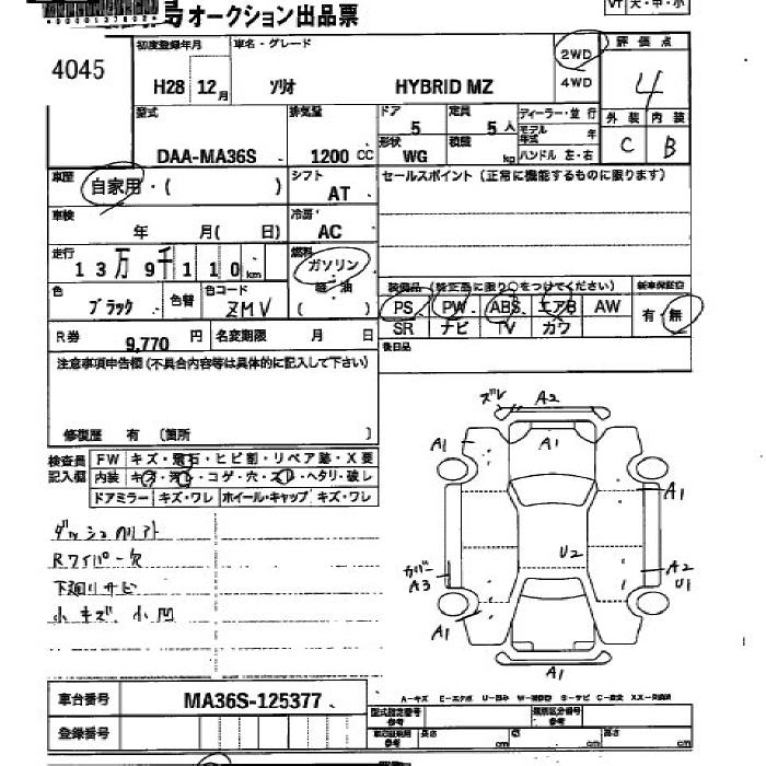 | HYBRID SX | DAA-MA46S | K12C | FF | 5AT | 1242cc | 91ps(67kW)/6000rpm | AИ-92 | 1 917 000 |