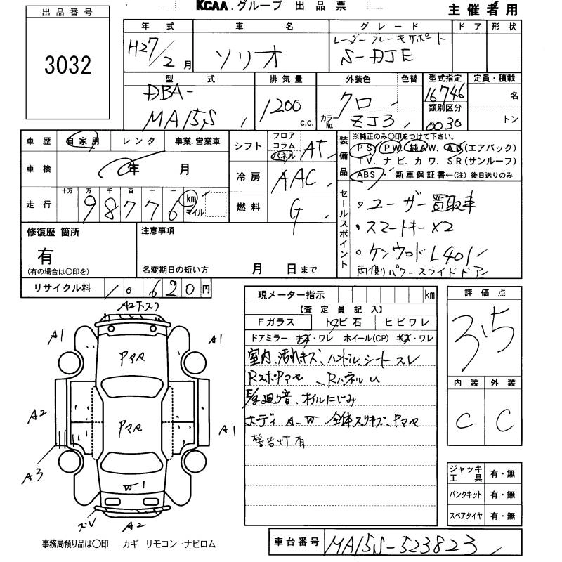 SUZUKI SOLIO 2015 г., лот № 3032