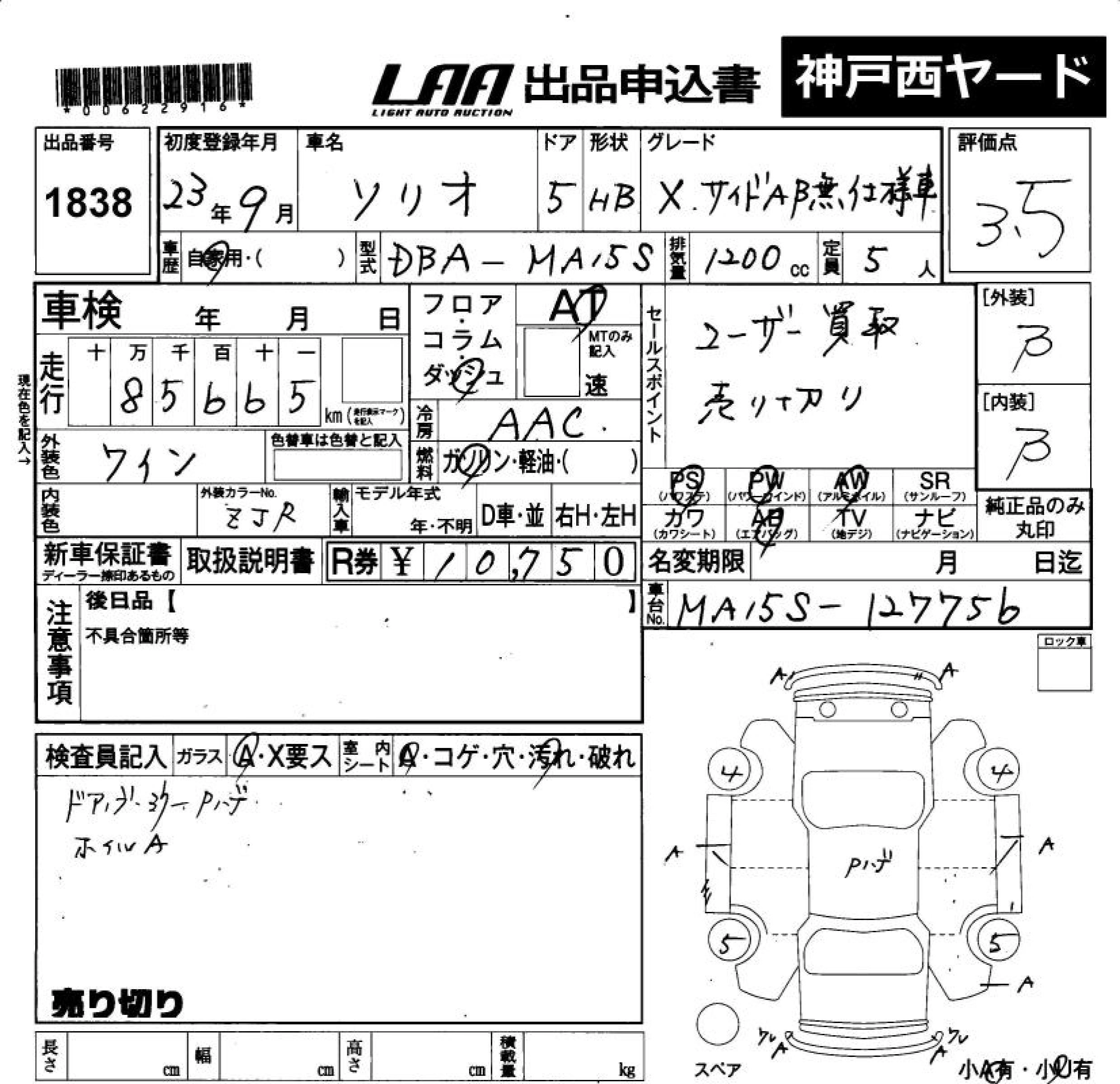 | BLACK&WHITE | DBA-MA15S | K12B | FF | CVT | 1242cc | 91ps(67kW)/6000rpm | AИ-92 | 1 683 150 | |