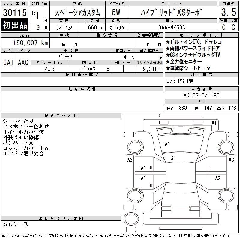 | HYBRID GS | DAA-MK53S | R06A | FF | CVT | 658cc | 52ps(38kW)/6500rpm | AИ-92 | 1 545 500 |