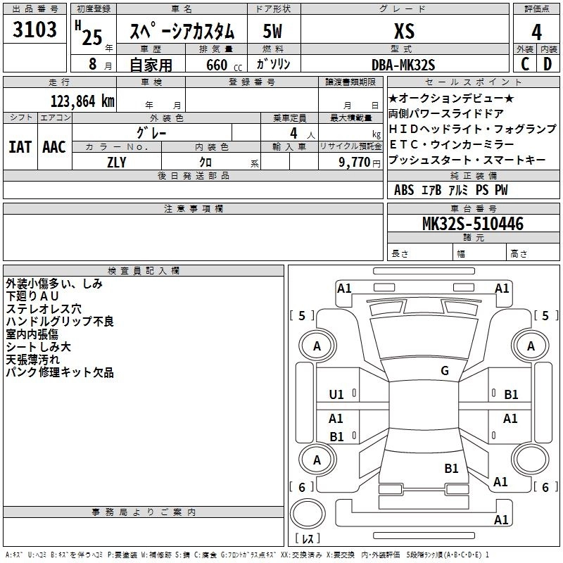 | GS | DBA-MK32S | R06A | Full-time 4WD | CVT | 658cc | 52ps(38kW)/6000rpm | AИ-92 | 1 603 350 | |