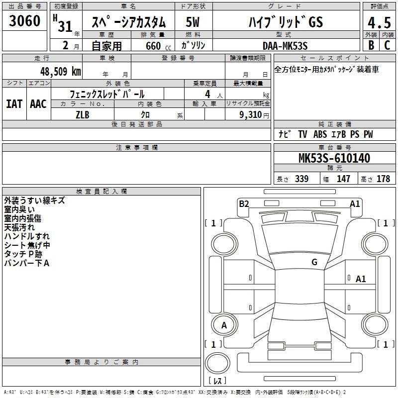 | HYBRID GS | DAA-MK53S | R06A | FF | CVT | 658cc | 52ps(38kW)/6500rpm | AИ-92 | 1 545 500 |