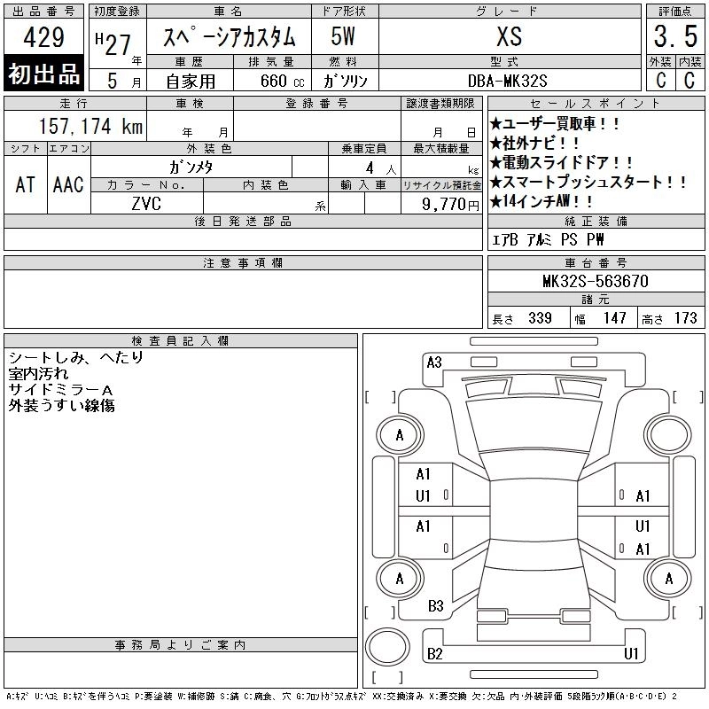 | XS | DAA-MK42S | R06A | Full-time 4WD | CVT | 658cc | 52ps(38kW)/6500rpm | AИ-92 | 1 838 160 | |