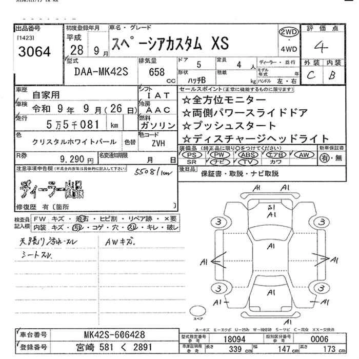 | XS | DAA-MK42S | R06A | Full-time 4WD | CVT | 658cc | 52ps(38kW)/6500rpm | AИ-92 | 1 842 480 | |