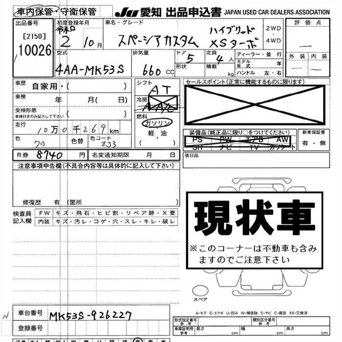 | HYBRID XS TURBO | 4AA-MK53S | R06A | FF | CVT | 658cc | 64ps(47kW)/6000rpm | AИ-92 | 1 835 900 | |