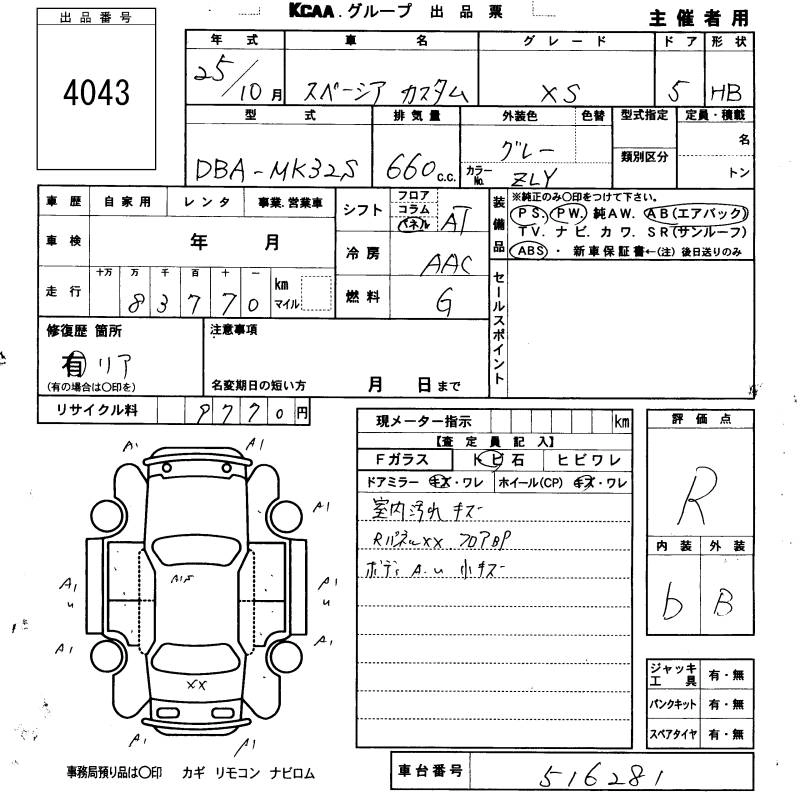 | GS | DBA-MK32S | R06A | Full-time 4WD | CVT | 658cc | 52ps(38kW)/6000rpm | AИ-92 | 1 603 350 | |