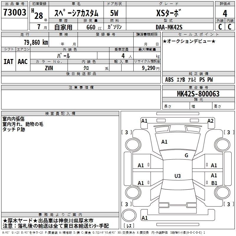 | XS TURBO | DAA-MK42S | R06A | FF | CVT | 658cc | 64ps(47kW)/6000rpm | AИ-92 | 1 721 520 | |