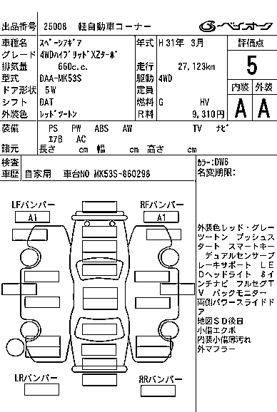 | HYBRID XZ | DAA-MK53S | R06A | FF | CVT | 658cc | 52ps(38kW)/6500rpm | AИ-92 | 1 644 500 |