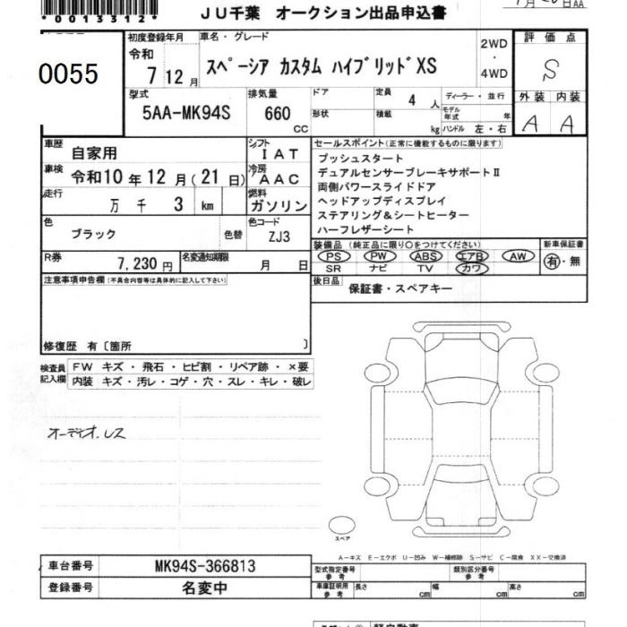 Год выпуска2025 КузовMK94S Комплектация CUSTOM HYBRID XS
