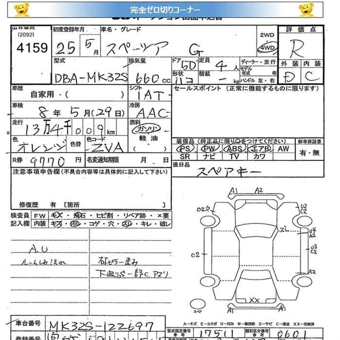 | X | DBA-MK32S | R06A | FF | CVT | 658cc | 52ps(38kW)/6000rpm | AИ-92 | 1 323 000 |