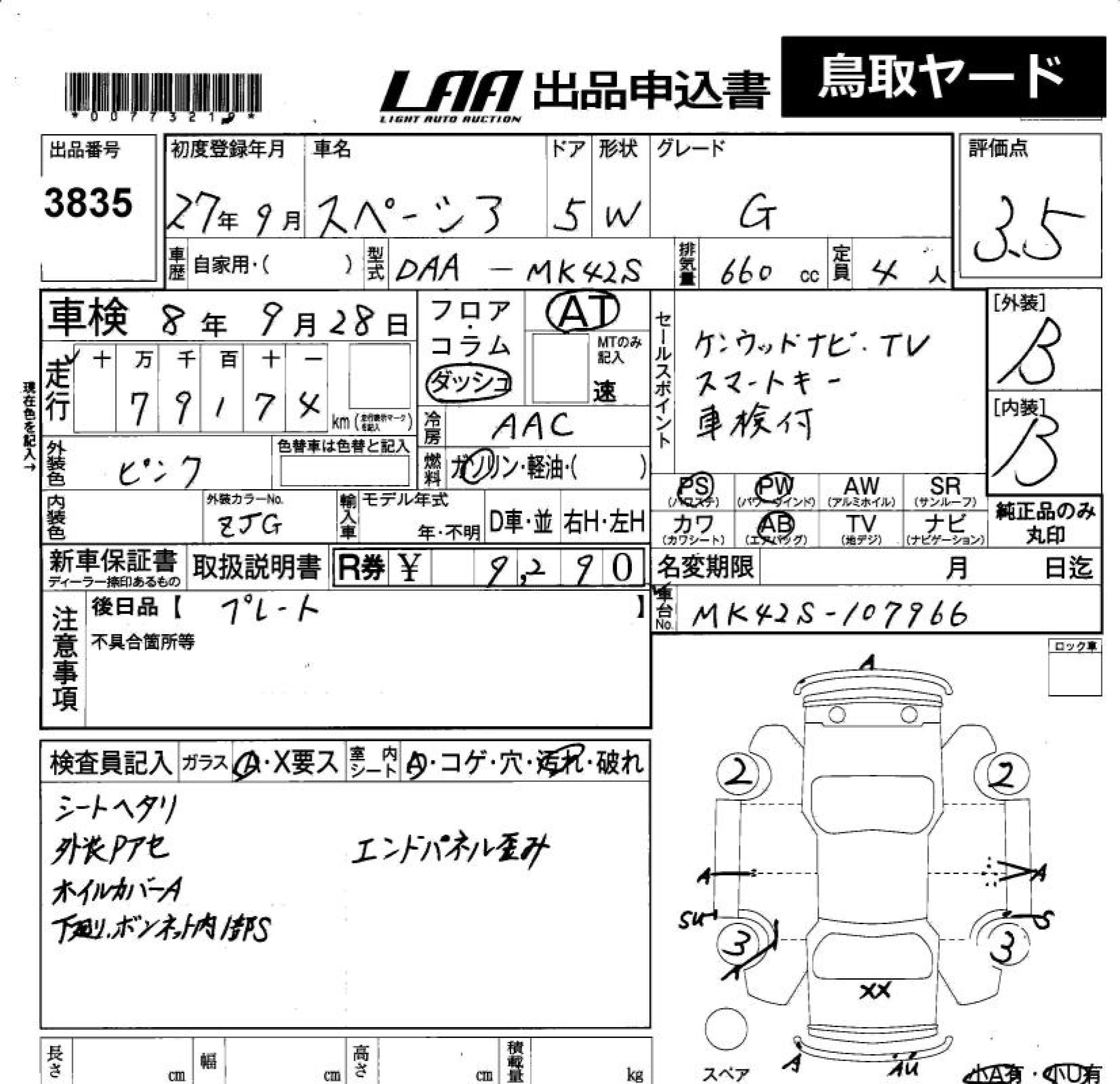 | T | DAA-MK42S | R06A | FF | CVT | 658cc | 64ps(47kW)/6000rpm | AИ-92 | 1 566 000 | |
