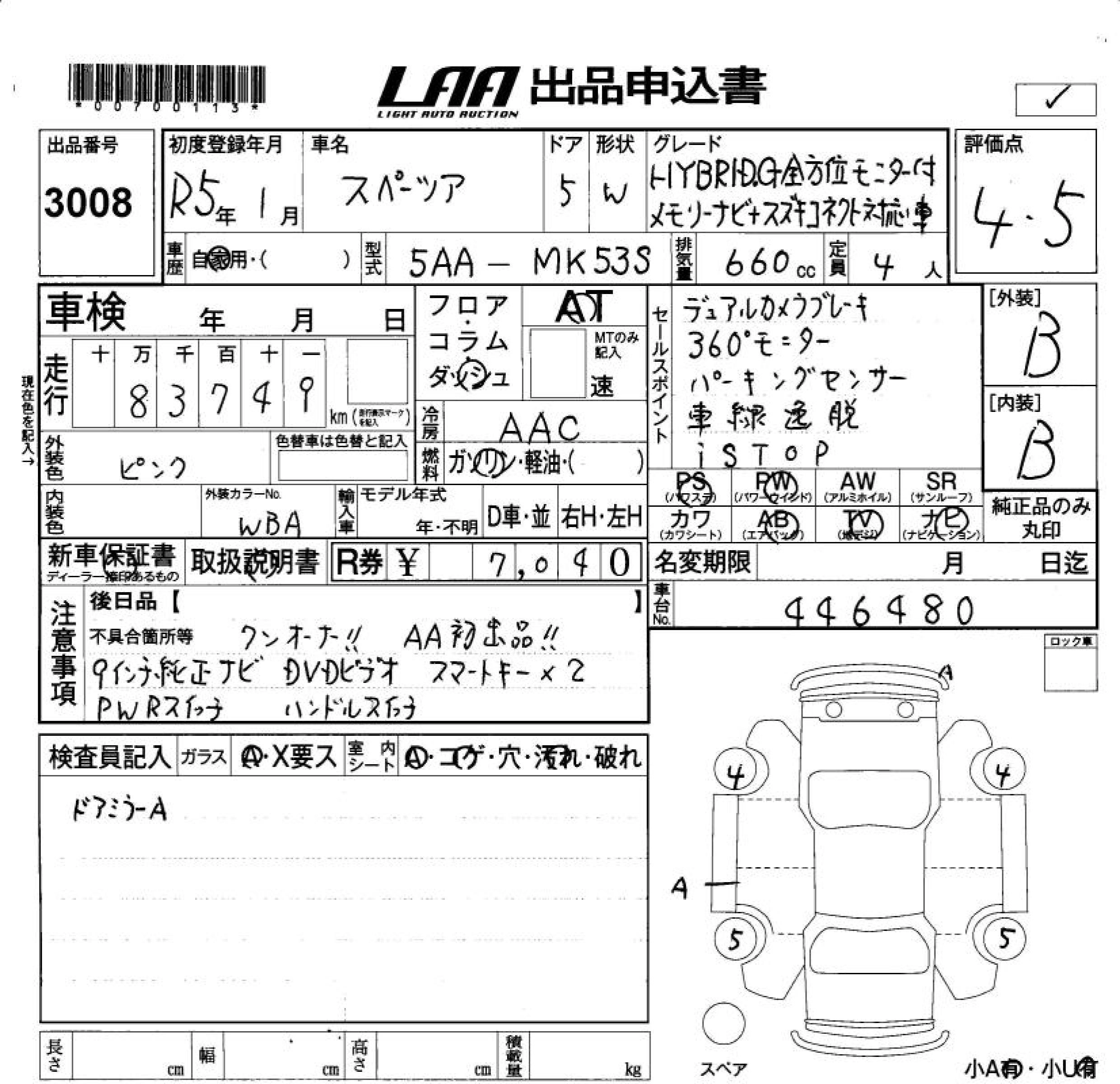Год выпуска2023 Пробег 84 000 км КузовMK53S Комплектация HYBRID G ALL PERSON . MONITOR ATTACHING
