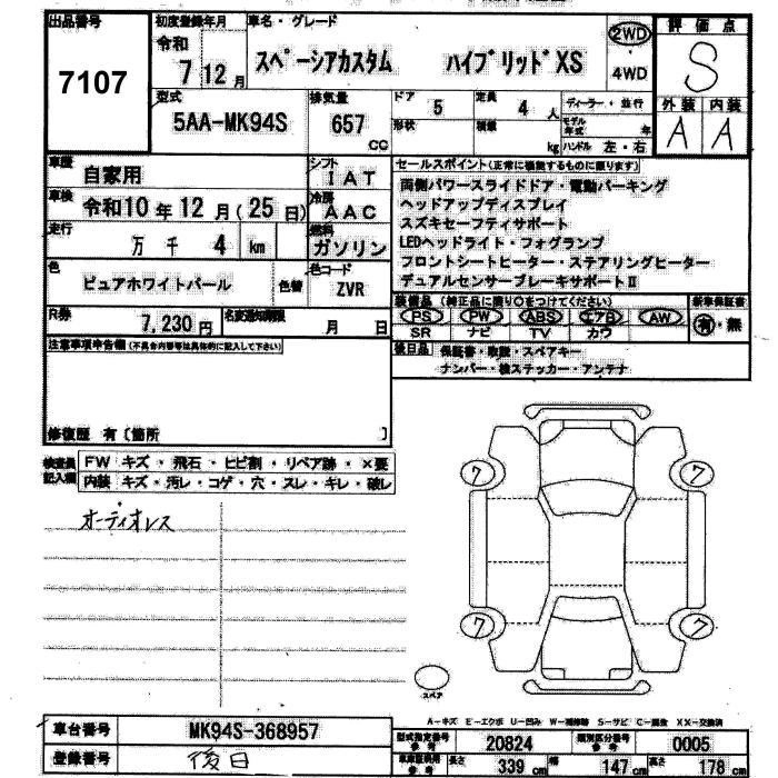 Год выпуска2025 КузовMK94S Комплектация CUSTOM HYBRID XS