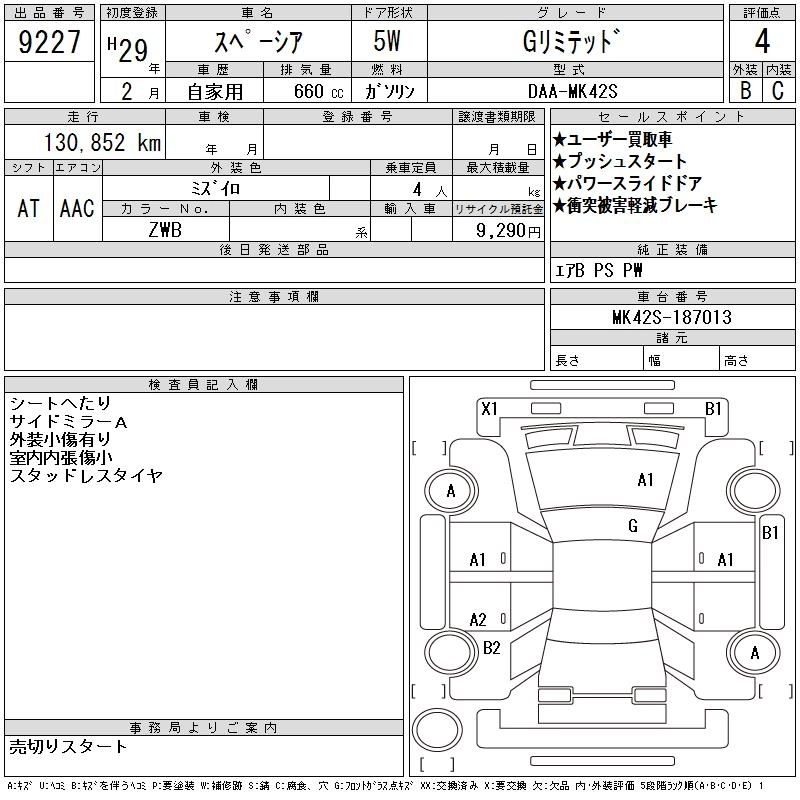| G | DAA-MK42S | R06A | Full-time 4WD | CVT | 658cc | 52ps(38kW)/6500rpm | AИ-92 | 1 395 360 | |