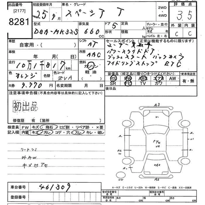 | X | DBA-MK32S | R06A | FF | CVT | 658cc | 52ps(38kW)/6000rpm | AИ-92 | 1 365 000 | |